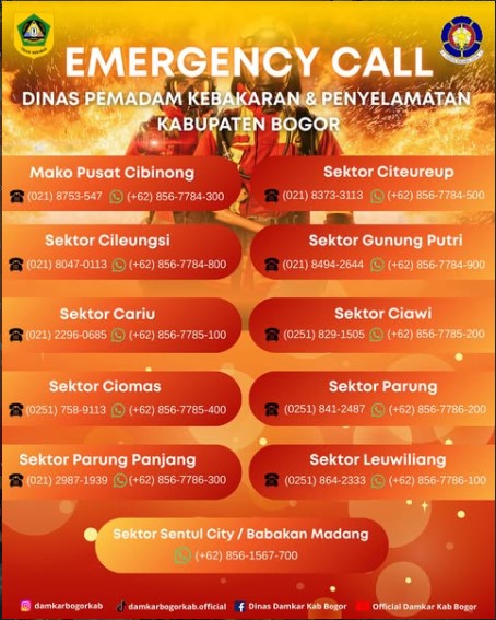 Sektor Dinas Pemadam Kebakaran dan Penyelamatan Kab.Bogor Berikut Nomor Telp/WA Sektor yang dapat dihubungi